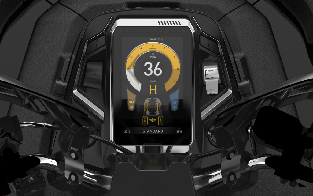 A nagy, jól olvasható LCD/TFT kijelző, a fokozott védelmet nyújtó markolat- és kormányburkolatok, a központi váltókar, valamint a zárható váltóház kényelmes és biztonságos kezelhetőséget biztosítanak.