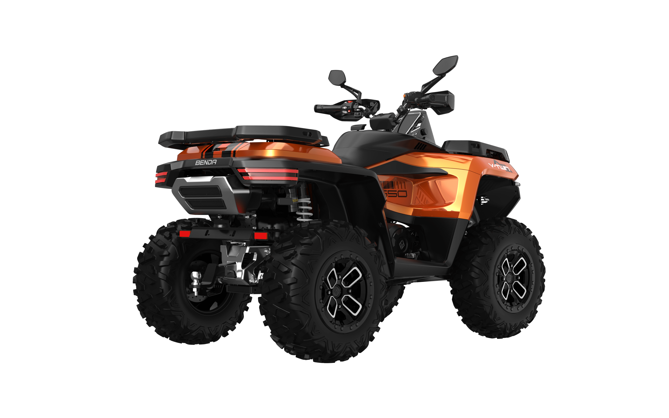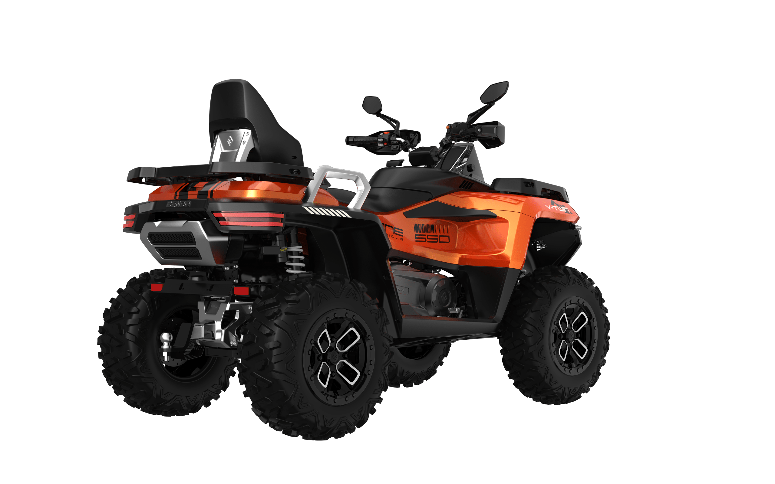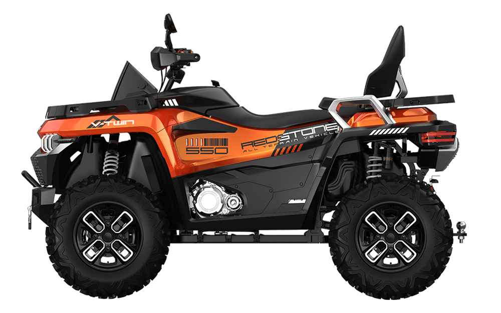 Ismerd meg a Benda Redstone 550 R2 MD-t, a V2-es motorral szerelt, erős és kényelmes túraquadot, amely munkában, terepezésben és hétvégi kikapcsolódásban is otthon van. A karakteres V2-es blokk, az automata váltó és a kapcsolható 2WD/4WD hajtás gondoskodik róla, hogy legyen erő és tapadás bőven, akár aszfalton, akár sárban használod.