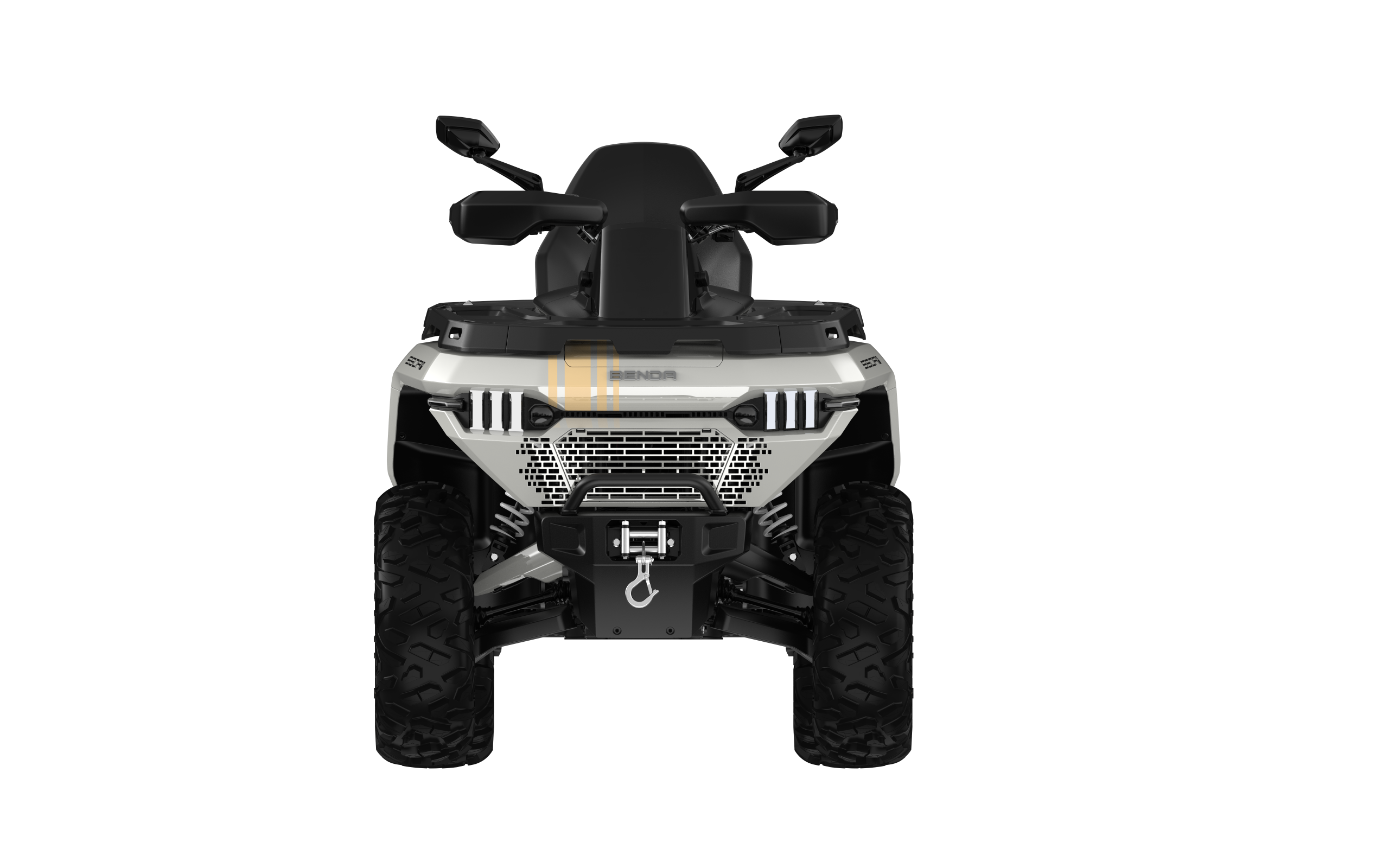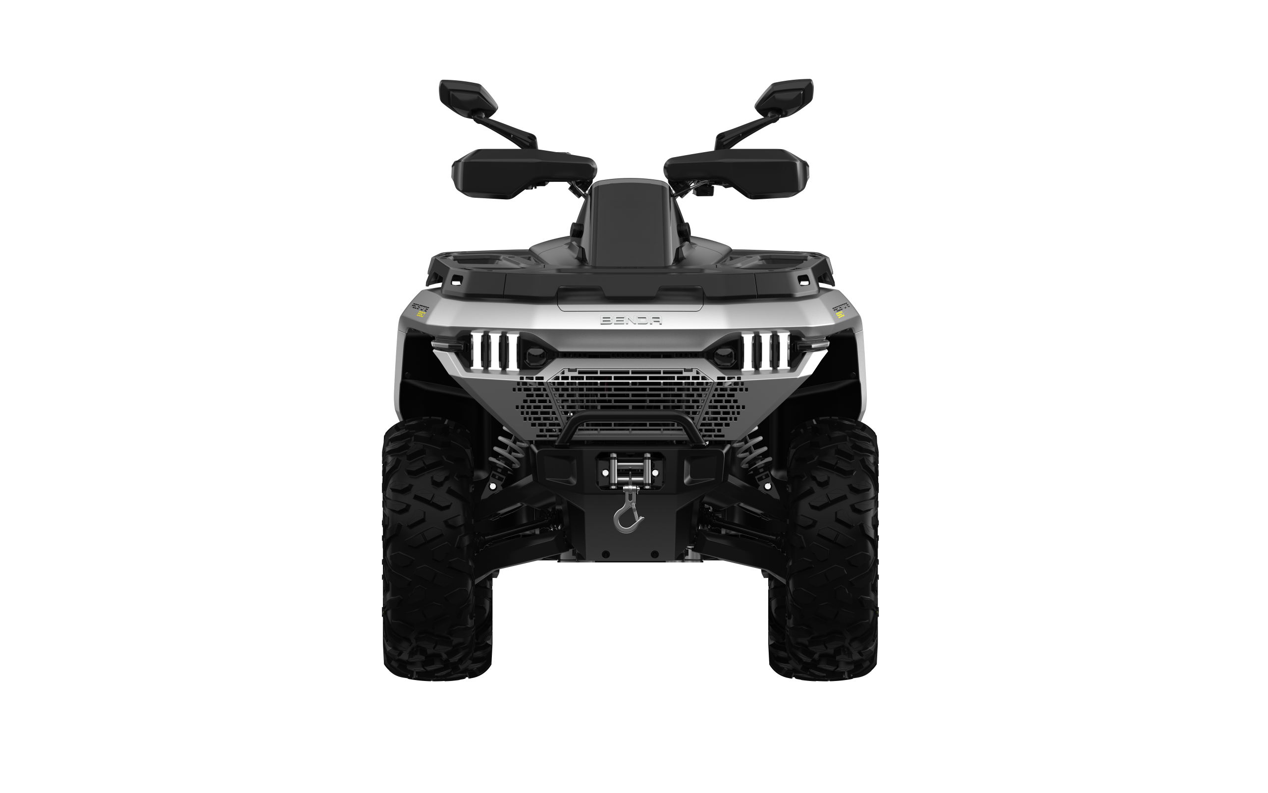 A tökéletesen integrált csörlő nem rontja az ATV összképét, és mindig bevetésre kész. A hűtőrács szerszám nélkül, egyszerűen eltávolítható – ideális a gyors, terepen végzett tisztításhoz. Az összhatást modern, karakteres formavilágú és kimagasló fényerejű LED fényszórók teszik teljessé.